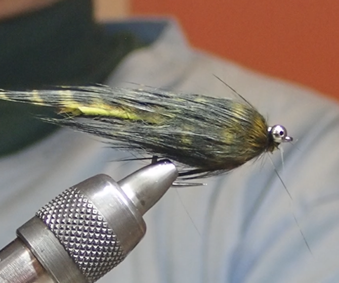 Ce montage d'un streamer "Zonker" est délibérément simple pour permettre la découverte de la manipulation d'une bandelette de lapin, ici teintée et striée.